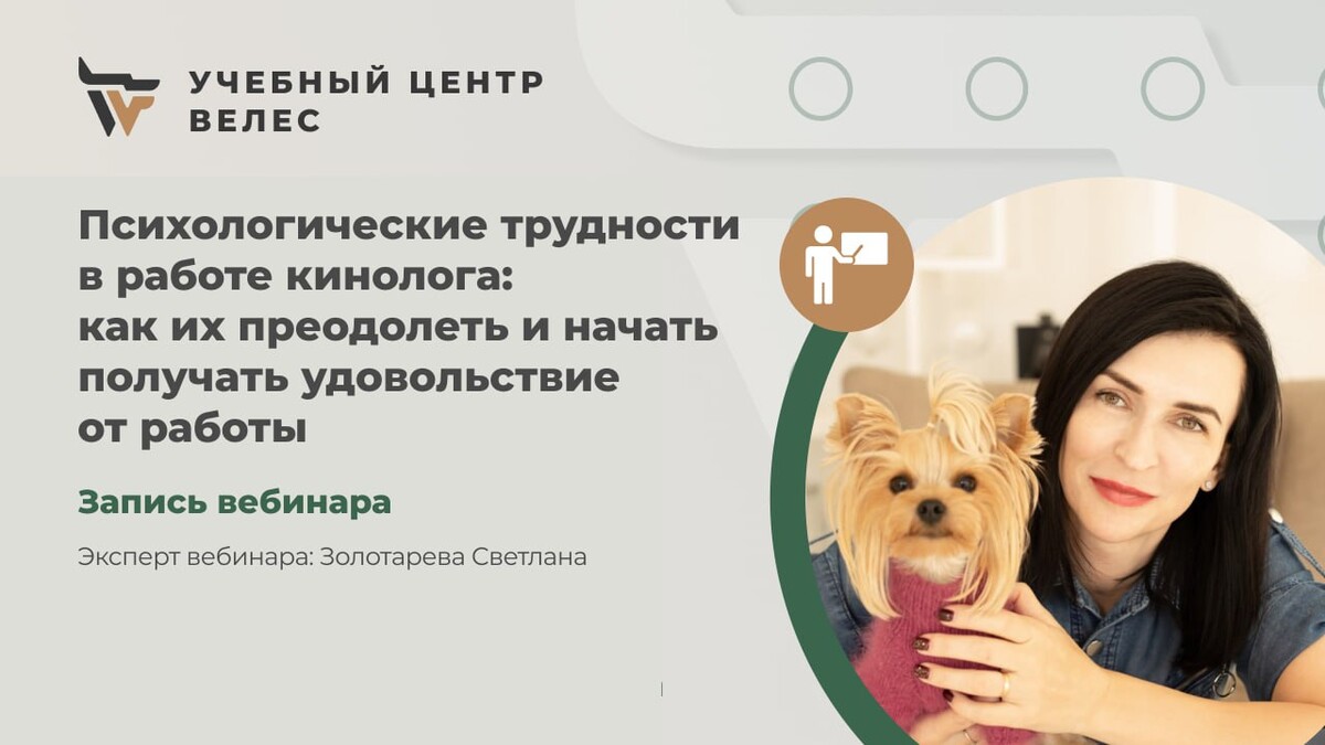 Вебинар «Психология для кинологов». Психологические трудности в работе кинолога: как их преодолеть и начать получать удовольствие от работы.